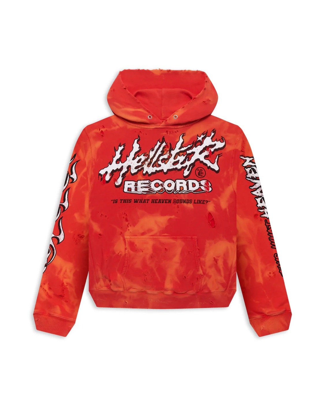 Fleece hoodie is made with custom milled fleece fabric, finished with a vintage wash and potassium spray all manufactured in Los Angeles. Hellstar Records graphics screen printed on the chest, arms, and back. This garment fits slightly oversized.